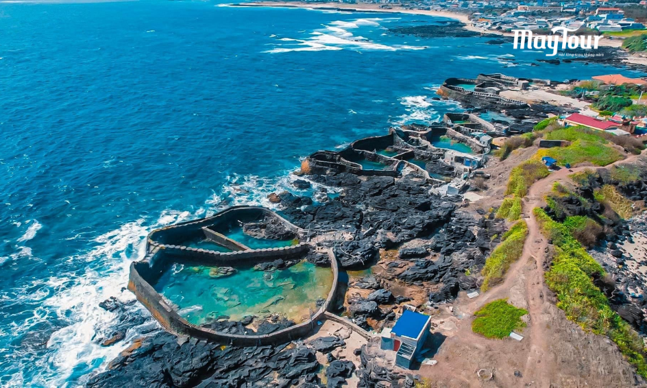 Điểm đến tiếp theo là Gành Hang – nơi những vách đá núi lửa dựng đứng tạo nên một tuyệt tác thiên nhiên hiếm có. Ánh nắng chiếu vào các mảng đá sắc màu, hòa cùng tiếng sóng biển, tạo nên một khung cảnh vừa hoang sơ vừa nghệ thuật. Ngay bên cạnh là Bãi Nhỏ – một bãi biển nhỏ xinh với làn nước trong như pha lê. Đây là điểm du khách thường nói “đẹp như Maldives phiên bản Việt Nam”, và chắc chắn là góc sống ảo không thể thiếu trong mọi tour Phú Quý khởi hành tối.